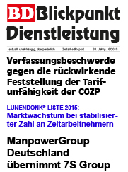 • LÜNENDONK®-LISTE 2015 "Führende Zeitarbeits- und Personaldienstleistungsunternehmen in Deutschland" Marktwachstum bei stabilisierter Zahl an Zeitarbeitnehmern