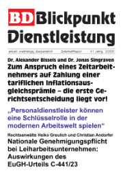 • Dr. Alexander Bissels und Dr. Jonas Singraven – Zum Anspruch eines Zeitarbeitnehmers auf Zahlung einer tariflichen Inflationsausgleichsprämie – die erste Gerichtsentscheidung liegt vor!
